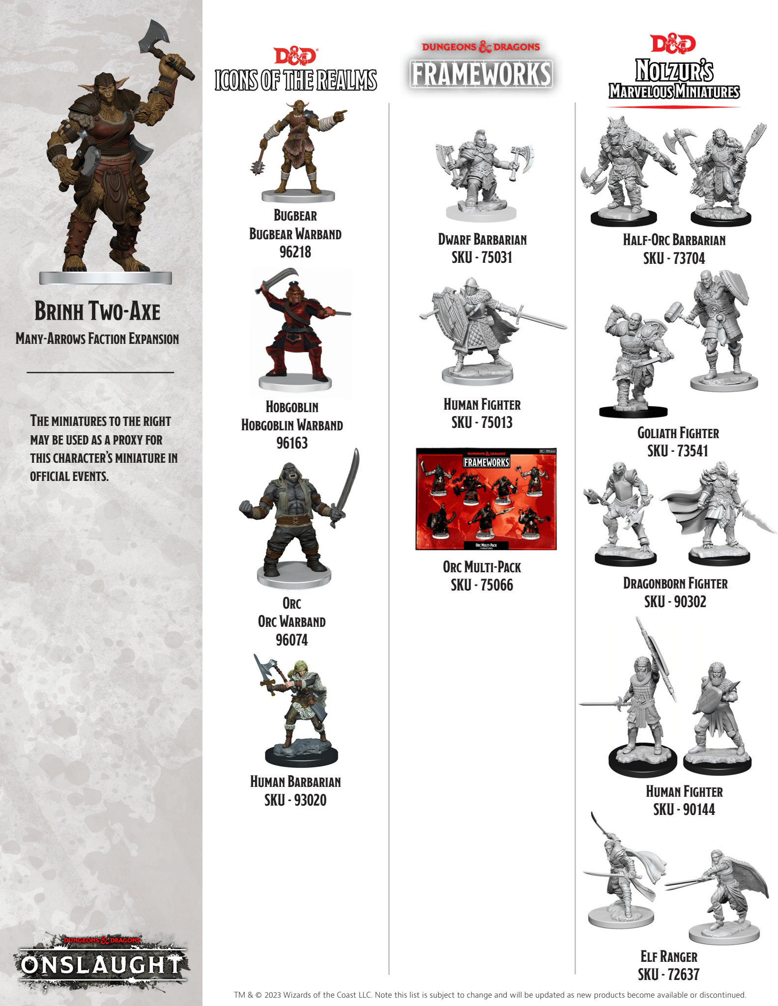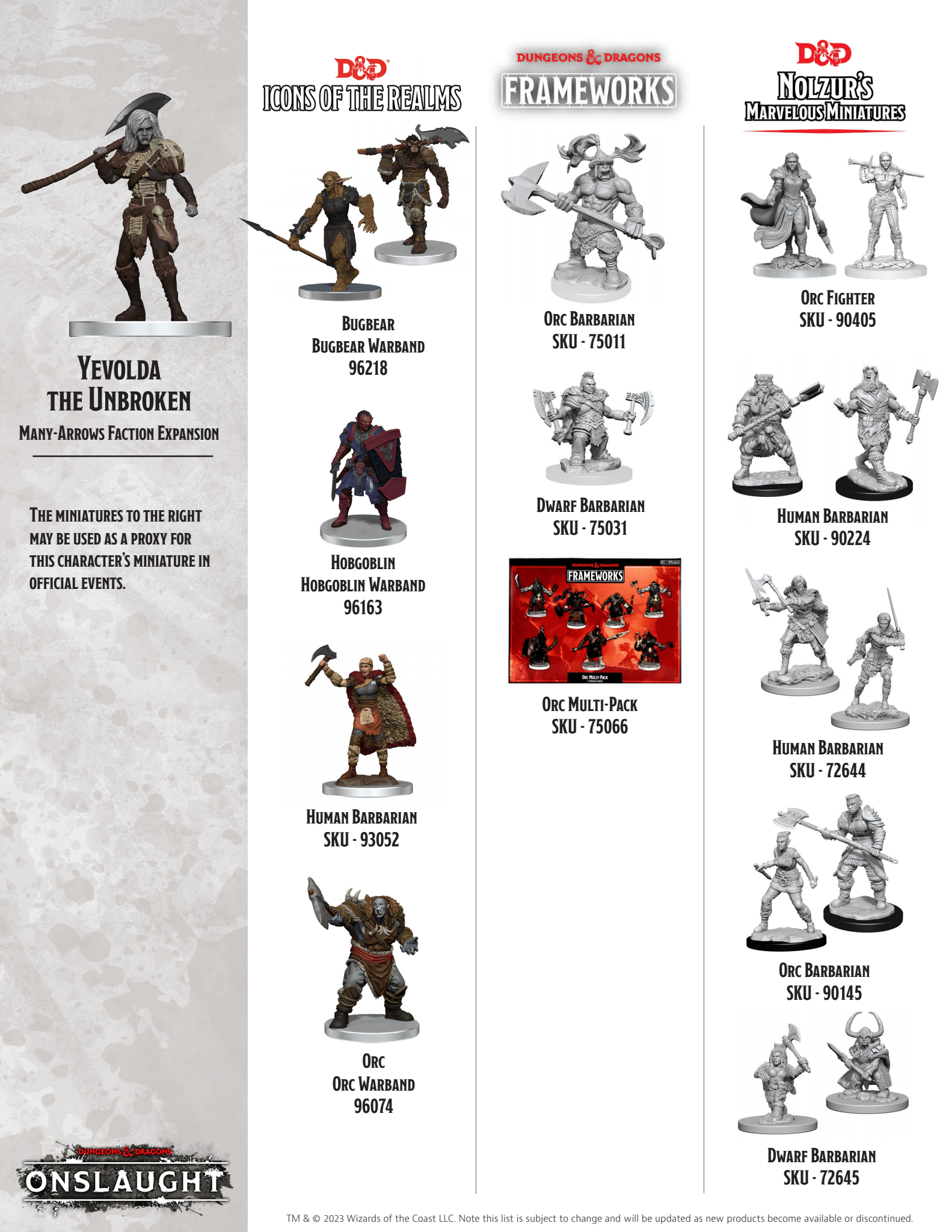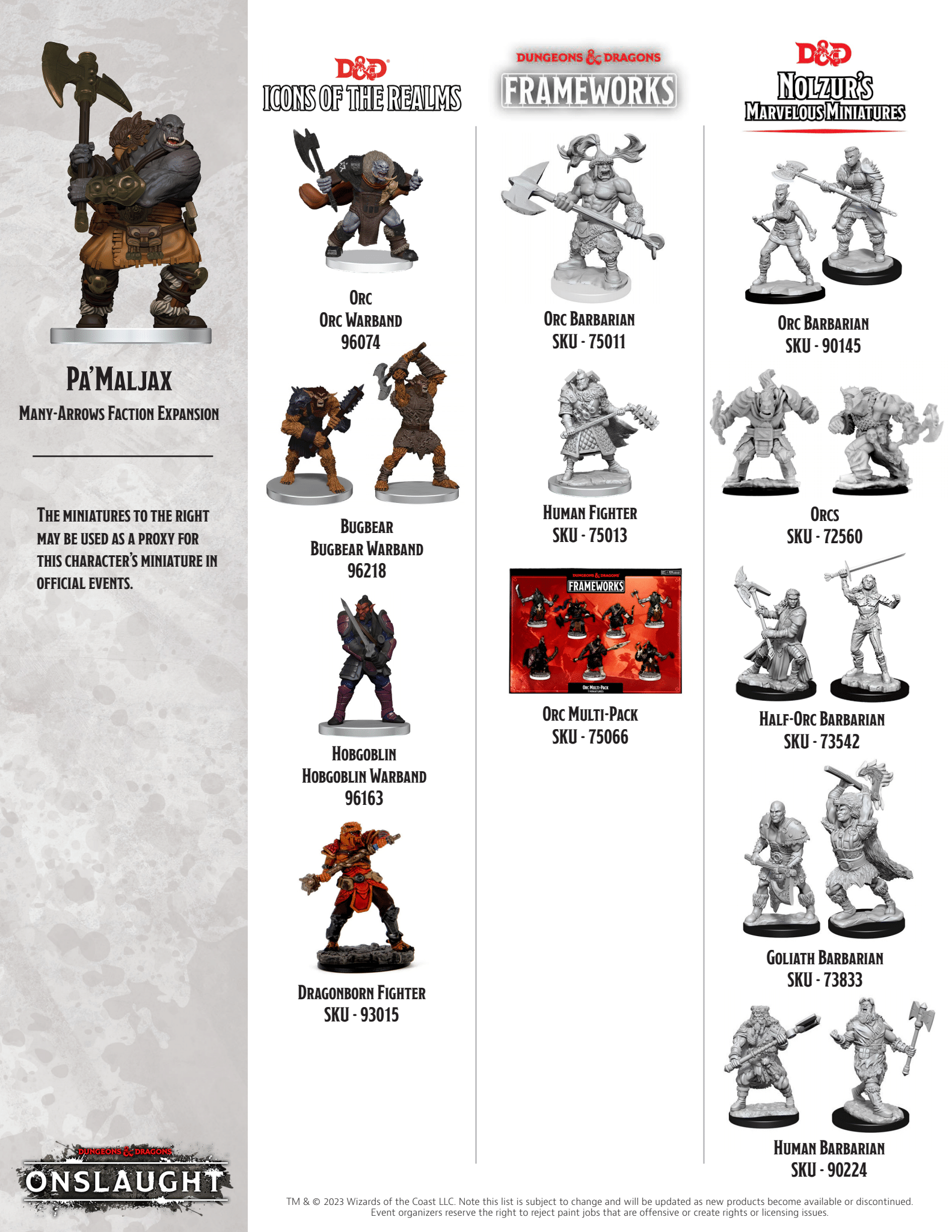 The Many-Arrows Faction Pack expands your games of D&D Onslaught with an aggressive, hard-hitting faction largely comprised of Orc warriors and their allies. The Many-Arrows specialize in Rooting and Slowing their foes, keeping the opposition from vital objectives and within range of powerful, short-ranged attacks.