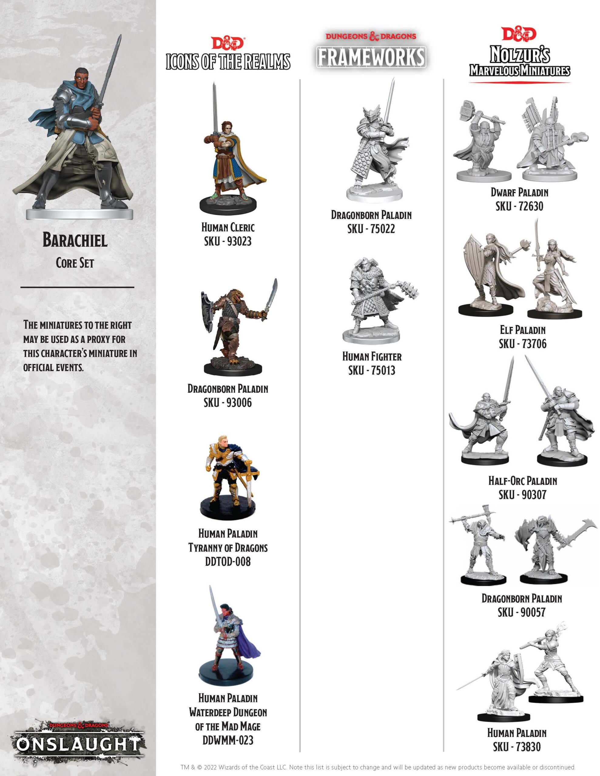 Though Dungeons & Dragons: Onslaught comes with a great selection of pre-painted miniatures to represent the game’s heroes (and monsters), players can customize their adventuring parties by using other miniatures from WizKids pre-painted and unpainted RPG miniature lines!